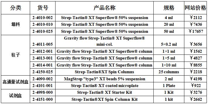 B、凡購買Strep-Tactin?系列產(chǎn)品,贈送一組Strep-Tactin?XT Trial Kit (Cat#2-4999-999)