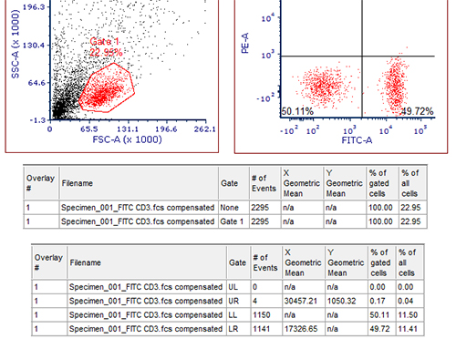 出現(xiàn)補(bǔ)償編輯欄,從PE通道中去除FITC的熒光信號(hào),使PE通道的Mean/Median值與陰性細(xì)胞群一致。