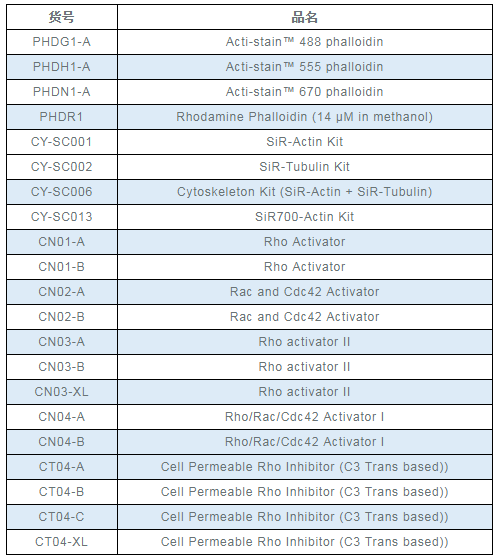 由于產(chǎn)品比較有特色,研究細(xì)胞骨架總是繞不開他們,包括F-actin、Tubulin的可視化以及信號通路中rac/cdc/rho的激活劑抑制劑等,同時(shí)促銷時(shí)間短暫,只到2月底(真希望這個(gè)2月有31天),