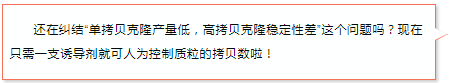 首先安利一下Epicentre的專利技術——CopyControl?克隆系統(tǒng),能夠讓您共享單拷貝和高拷貝的優(yōu)點。CopyControl?克?。菏紫纫詥慰截愋问缴L,單拷貝可以確保插入穩(wěn)定及成功克隆編碼基因序列;在需要的時候,通過誘導液誘導成高拷貝克隆,以便下游應用所需。這一系統(tǒng)可以用來構建PCR克隆,對于BAC,F(xiàn)osmid文庫等大型質粒格外有用。