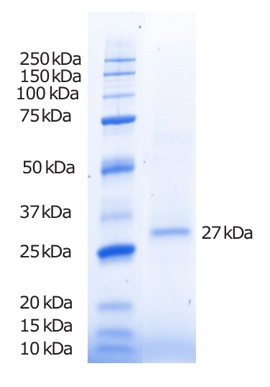 STING通過胞漿區(qū)域與CDNs結(jié)合。InvivoGen提供的重組STING蛋白對應(yīng)可溶性的胞漿結(jié)構(gòu)域(aa 137-379)R232突變型,是普遍的人源STING蛋白的同型。這個(gè)27kDa的重組蛋白產(chǎn)生自哺乳動(dòng)物中國倉鼠卵巢細(xì)胞系(CHO),通過親和層析純化,不帶標(biāo)簽,能夠被市面上的商品化人源STING抗體所識(shí)別。