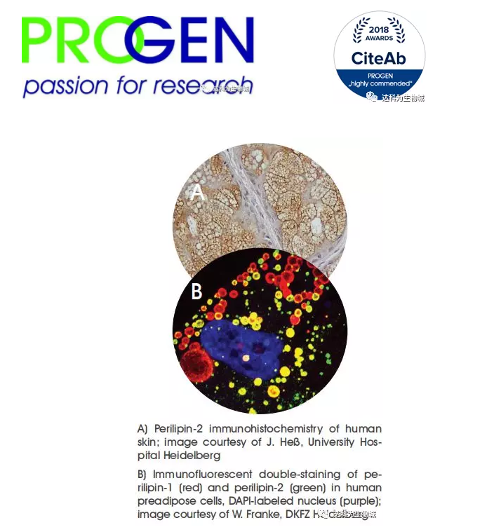 脂代謝與各種疾病的關(guān)系還需要需要更多的研究數(shù)據(jù),可靠的抗體是可靠結(jié)果的有力保證。Progen,德國(guó)品質(zhì),始于1983,是目前可提供較全PLIN1-5抗體以及發(fā)表文章較多的生產(chǎn)商,榮獲2018年CiteAb頒發(fā)的highly commended awards 。