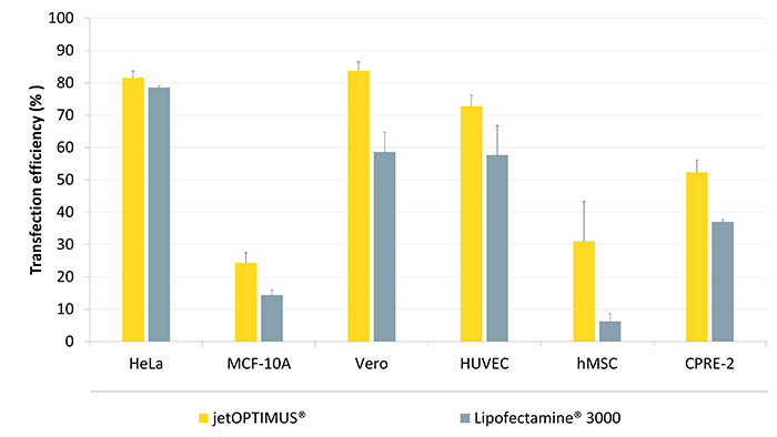 今天的主角jetOPTIMUS?是款陽離子聚合物轉(zhuǎn)染試劑,因改善了其內(nèi)化效力和內(nèi)體逃逸的能力,特別適合難轉(zhuǎn)貼壁細(xì)胞的DNA轉(zhuǎn)染。