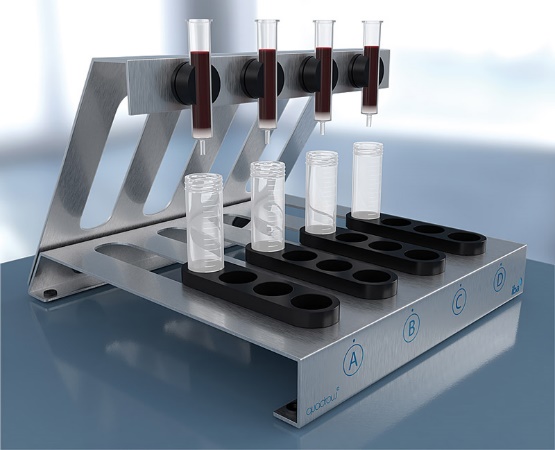 Adapter是Fab-TACS系列最先出來(lái)的產(chǎn)品,它是單根柱子分離。在我們血量較大的時(shí)候,我們想同時(shí)分選,Adapter的分選試劑盒操作起來(lái)就比較麻煩了,條件也很難保持一致性。因此,IBA廠家推出了Quadrow的分選試劑盒,它可實(shí)現(xiàn)4根柱子同時(shí)分選。