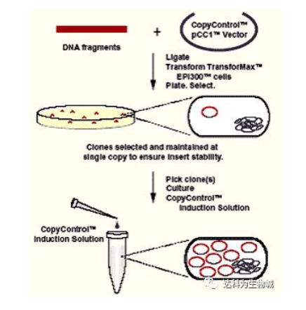 首先安利一下Epicentre的專利技術(shù)——CopyControl?克隆系統(tǒng),能夠讓您共享單拷貝和高拷貝的優(yōu)點(diǎn)。CopyControl?克?。菏紫纫詥慰截愋问缴L,單拷貝可以確保插入穩(wěn)定及成功克隆編碼基因序列;在需要的時(shí)候,通過誘導(dǎo)液誘導(dǎo)成高拷貝克隆,以便下游應(yīng)用所需。這一系統(tǒng)可以用來構(gòu)建PCR克隆,對于BAC,F(xiàn)osmid文庫等大型質(zhì)粒格外有用。