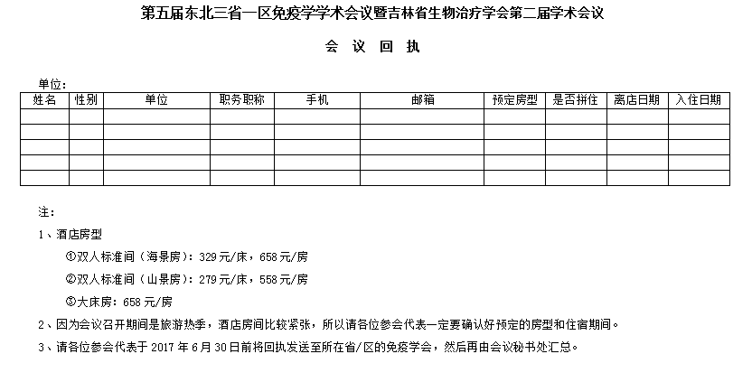 二、第五屆東北三省一區(qū)免疫學(xué)學(xué)術(shù)會(huì)議暨吉林省生物治療學(xué)會(huì)第二屆學(xué)術(shù)會(huì)議征文通知、會(huì)議費(fèi)用、交通等詳見附件。